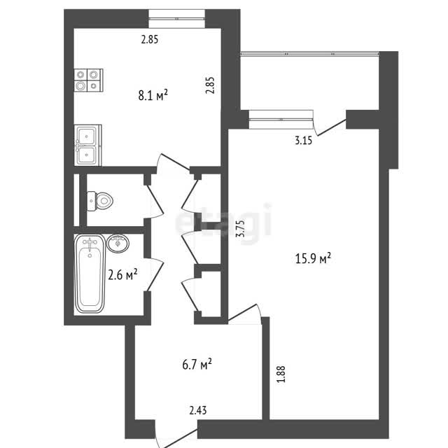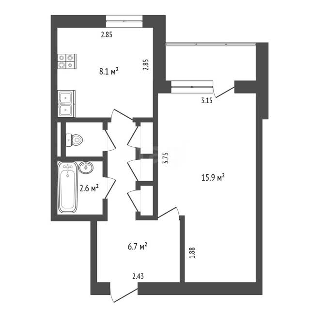 1-комн. квартира, 36.9м², 1/10 этаж